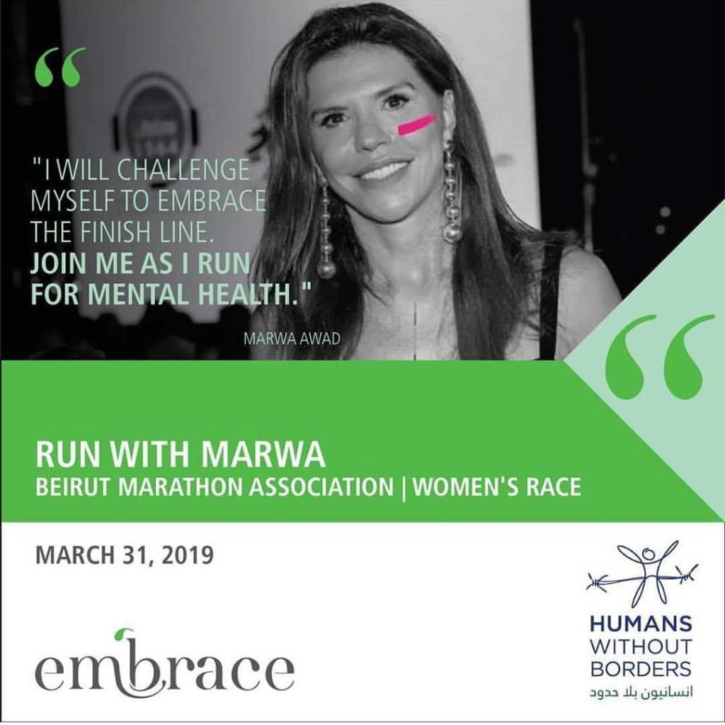 In 2018, HWB President and Founder Marwa Khouzami Awad ran the 24k race to raise awareness on the importance of Embrace’s 24/7 hotline 1564 that saves lives through providing counseling to avoid suicide attempts.